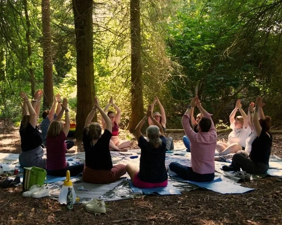 Sessions happen outdoors at Courteenhall Estate in Northamptonshire (not open to the general public). Activities include den-building, pond-dipping, slack-lining, gardening, cooking, animal care, and yoga/meditation for self-regulation.